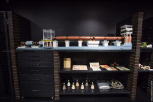 Интерактивный зал – зал трансформер. Фанерные столы и стулья музея особой конструкции. Из них можно собирать лавки, тумбы и подиумы для экспонирования. Это решение увеличивает экспозиционный потенциал, делает возможной быструю трансформацию пространства.